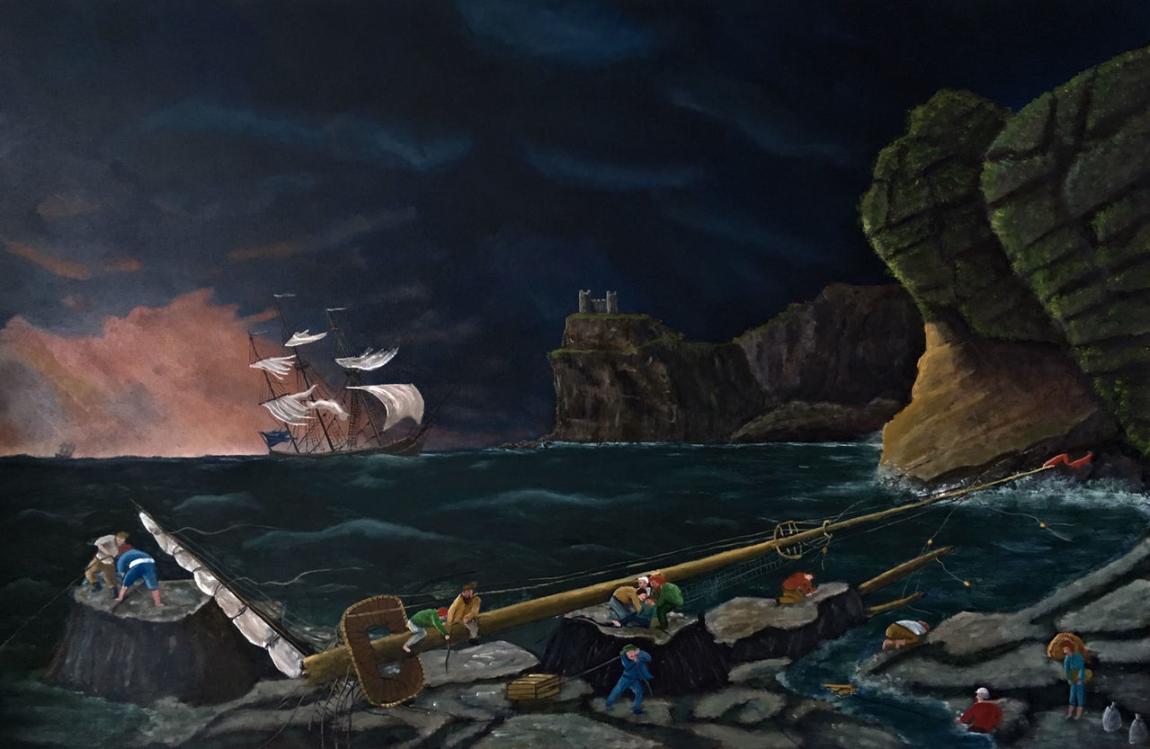 Zij gingen door het oog van de naald Maar hun schip heeft het niet gehaald Paniek en redden wat er te redden valt Deze zeereis heeft hun leven vergald