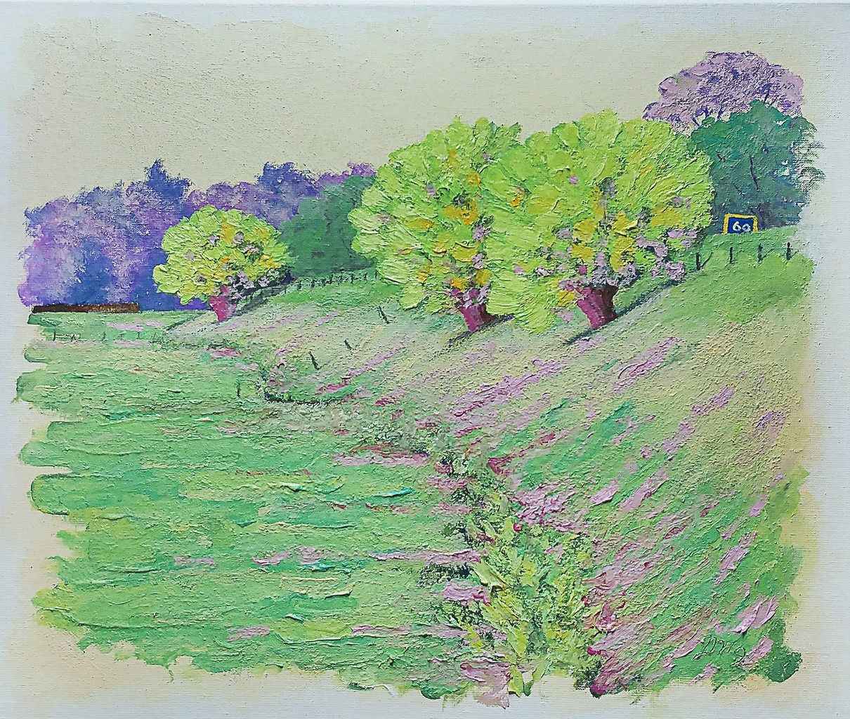 In mijn werken staat het landschap centraal wat op geheel eigen wijze wordt weergegeven in mixed media.