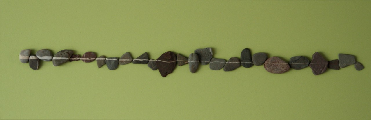 Een streep gevormd van steentjes met een marmer lijntje. Met een groene achtergrond
