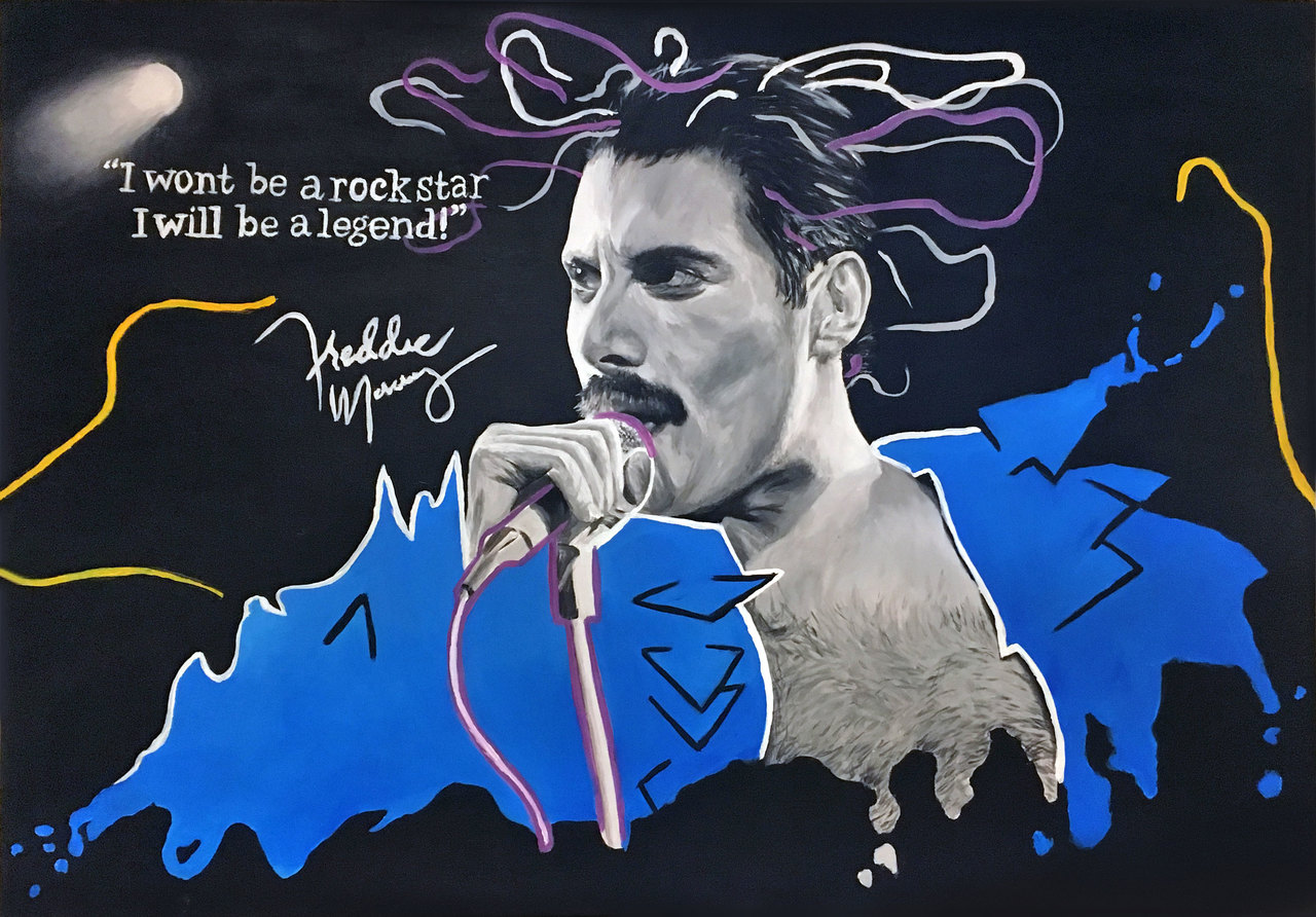 Schilderij Acryl Expressief Canvas Realistisch Painting Rock Paint Verf Legende Legend Freddie Mercury Rockstar Acryllics