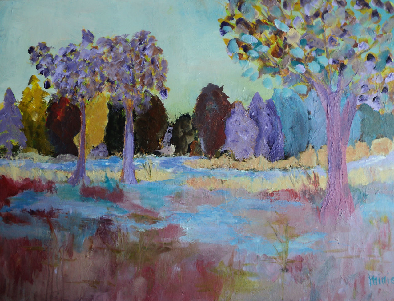Tijdens een fierstocht door De Schammer geinspireerd door de mooie natuur. Dat heeft dit schilderij als resultaat.