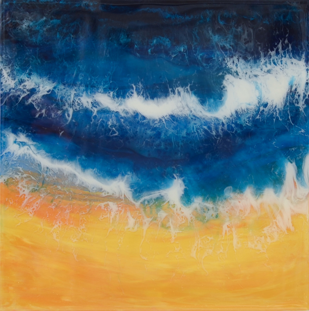 Dit werk is uitgevoerd op een plat houten paneel en geïnspireerd op de diepte die je kunt ontdekken in de zee. Door de diverse lagen transparante epoxy hebben de lagen een klein beetje ruimte en liggen de lagen over elkaar heen. Hierdoor kun je de verbinding tussen verschillende lagen zien maar ze ook apart bekijken. Dit werk is onderdeel van een serie werken in hetzelfde thema dat gaat over de kracht en schoonheid van water. LET OP! Dit werk is niet gemaakt van acrylverf maar afgewerkt met epoxy en dit heeft een glas-achtig en glanzend oppervlak.