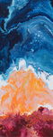 Dit kunstwerk heeft een interessante textuur waarbij je verschillende lagen van het schilderij tegelijk kunt bekijken. Alle lagen zijn afhankelijk van elkaar waar te nemen maar vormen een geheel.