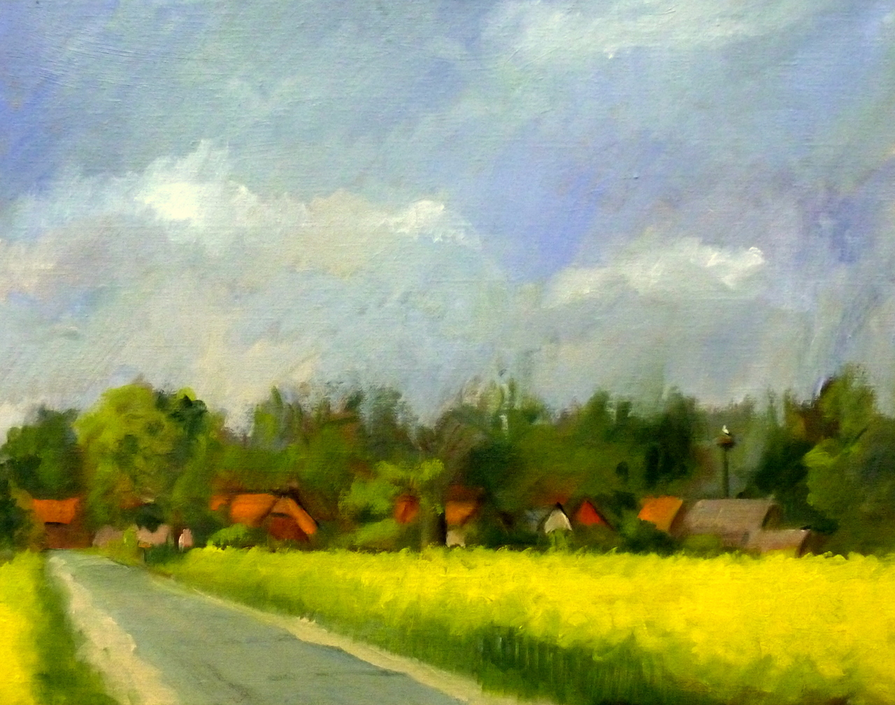 Een piepklein dorpje, een zogenoemd "Rundling" heb ik als achtergrond voor dit prachtige koolzaadveld als item. Het dorpje ligt vlakbij Hitzacker aan de Elbe.