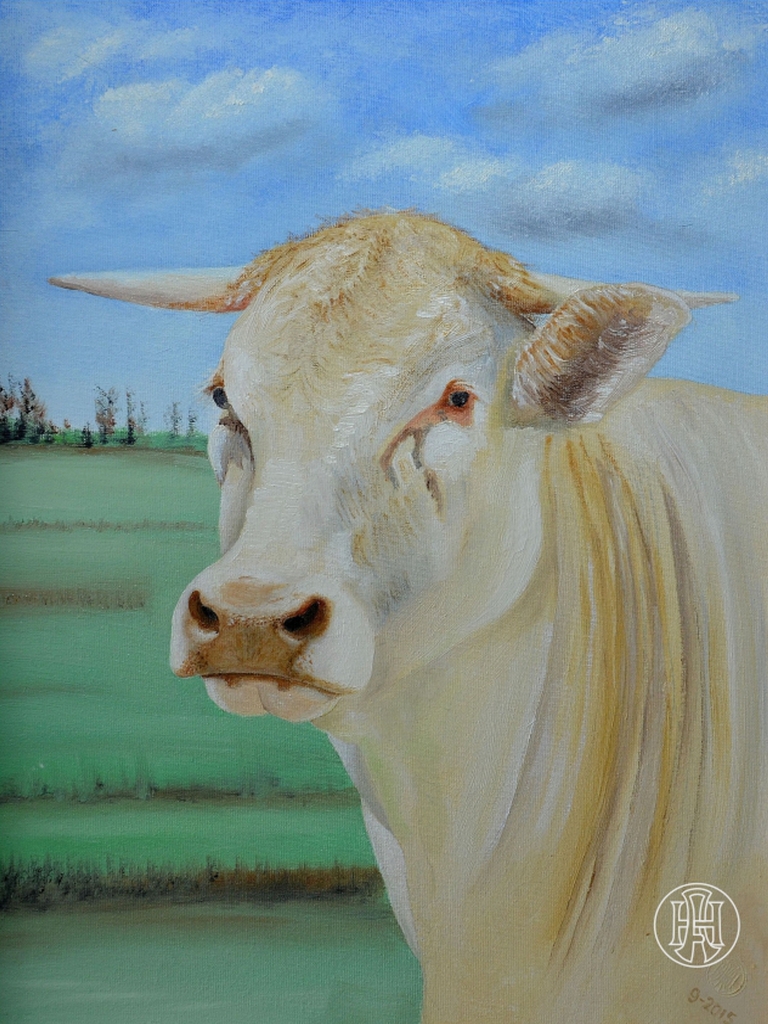 Blonde d'Aquitaine. Olieverf op paneel 30 x 40 cm. september 2015.