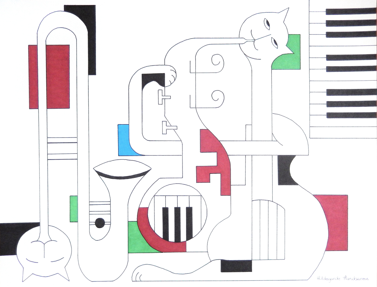 Modern Man Woman Women Black White Drawing Cat Piano Music Trombone Belgium Contrabas Saxophone
