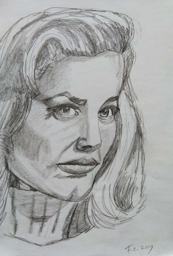 Lauren Bacall Amerikaans model en actrice (1924-2014) in potlood