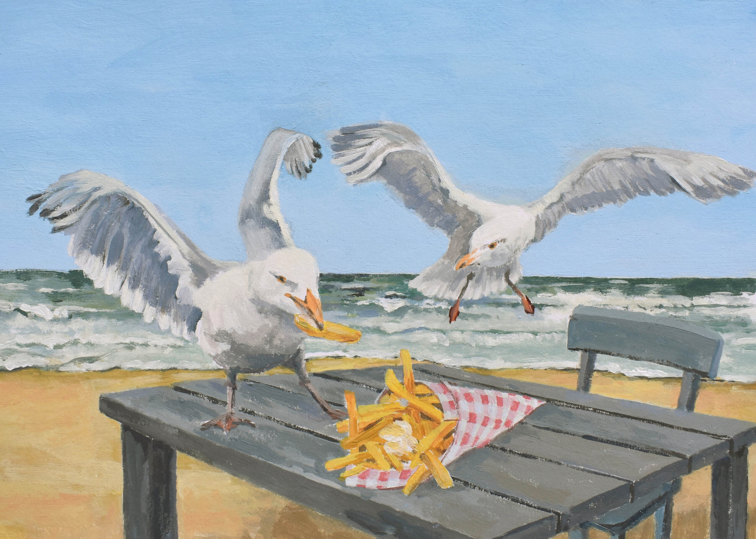Meeuwen stelen patat