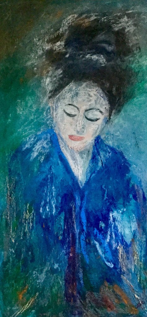Vrouw Geisha Oosters Blauw Groen