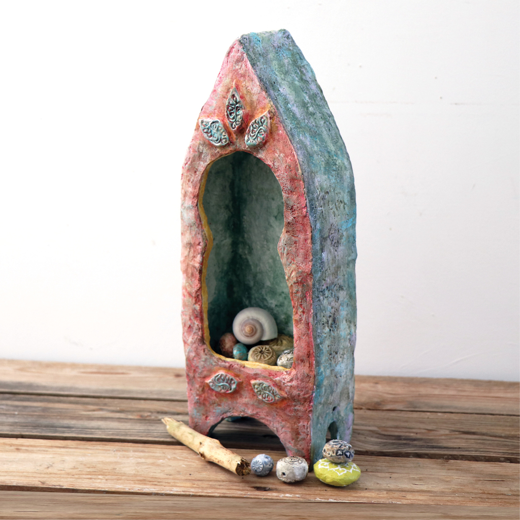 Rood Spiritueel Papier Papiermache Kastje Rustiek Altaar Shrine Ecodesign