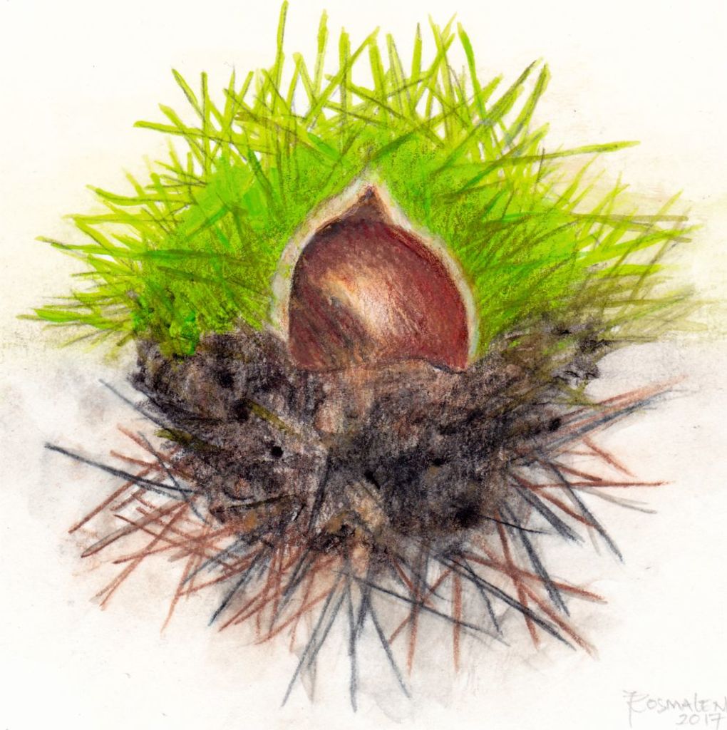 Groen Bruin Papier Krijt Houtskool Aquarelpotlood Kastanje Bolster Castanea Sativa
