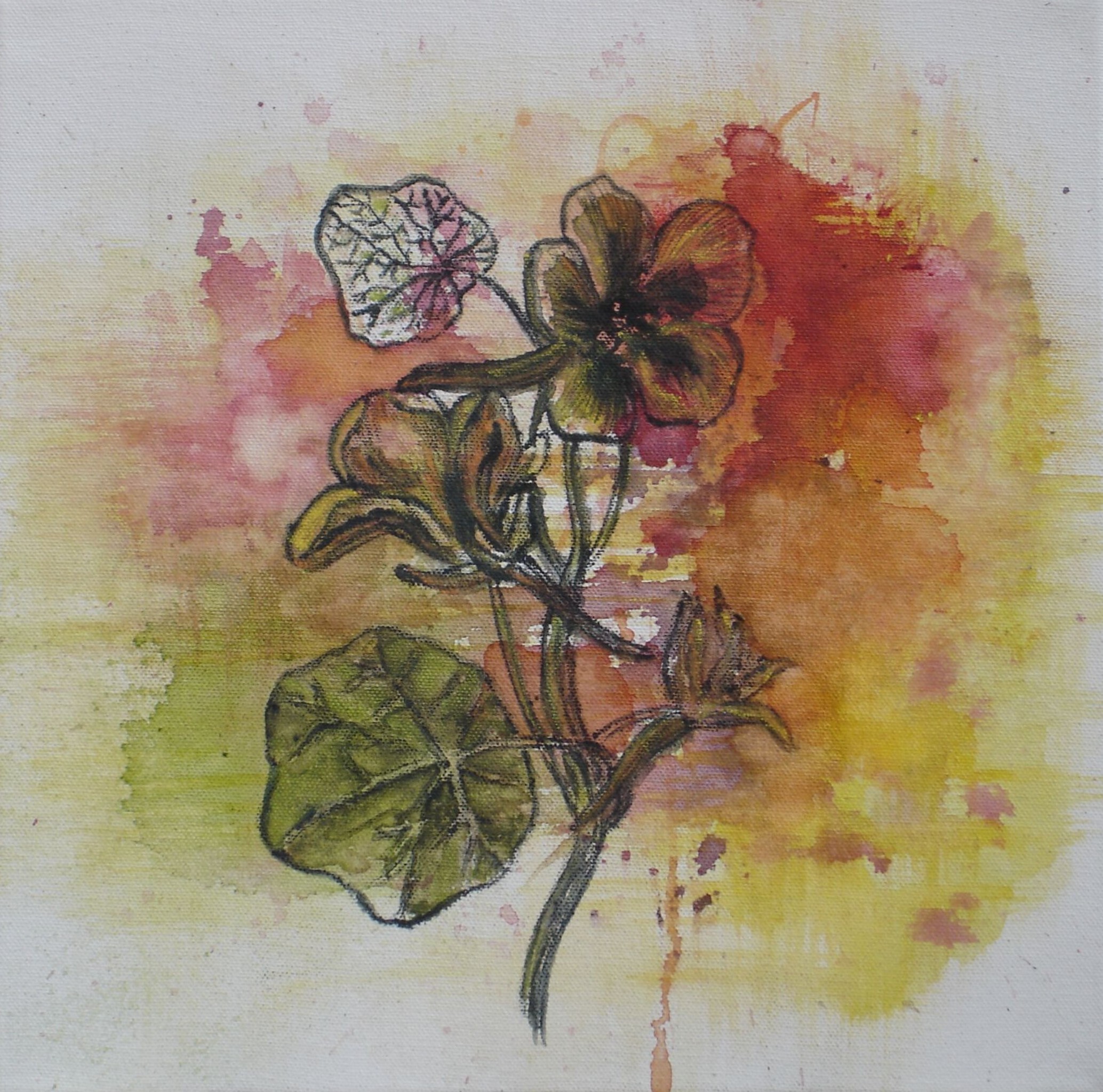 Rood Oranje Geel Groen Potlood Bloem Blad Verf Kers Oost-indische Tropaeolum Majus