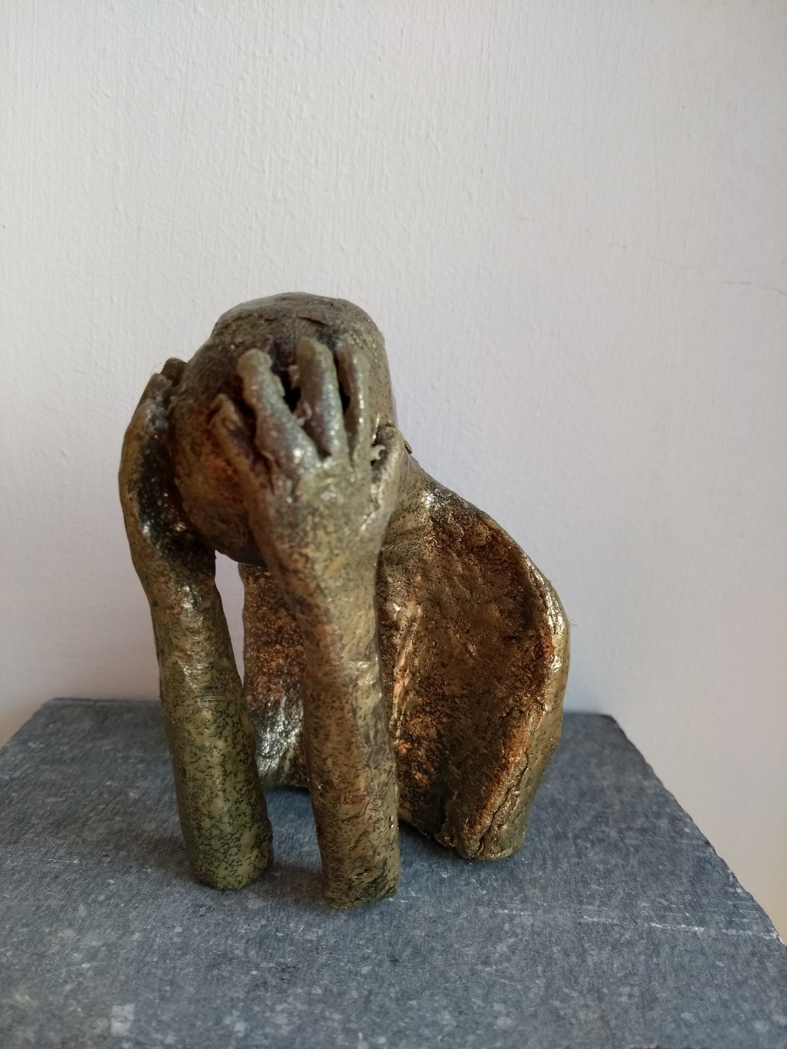 Wanhoop en totale uitzichtloosheid. Machteloosheid en kwetsbaarheid. Mezelf en de wereld niet meer willen en kunnen zien. Afsluiten van de wereld en opsluiten in mezelf. Ik ervaar niet meer de handen om met mezelf om te gaan. Volkomen leegte, woestenij, geraamte, uitgeholt, kwetsbaar en breekbaar. Het levenslicht is bijna gedoofd.