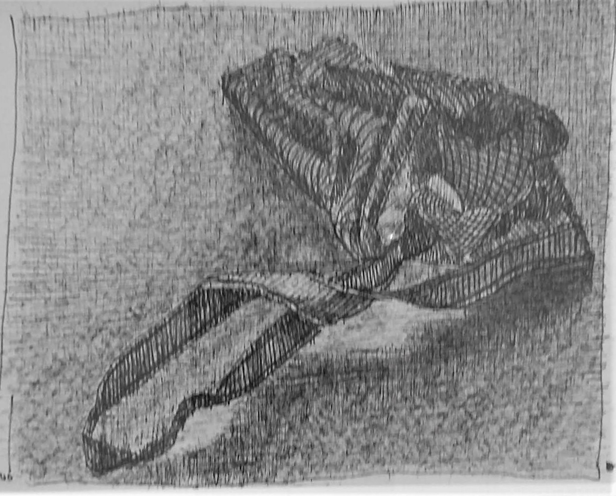 Realistisch Stof Voorwerp Stilleven Inkttekening Zwart/wit Inkt Tekening