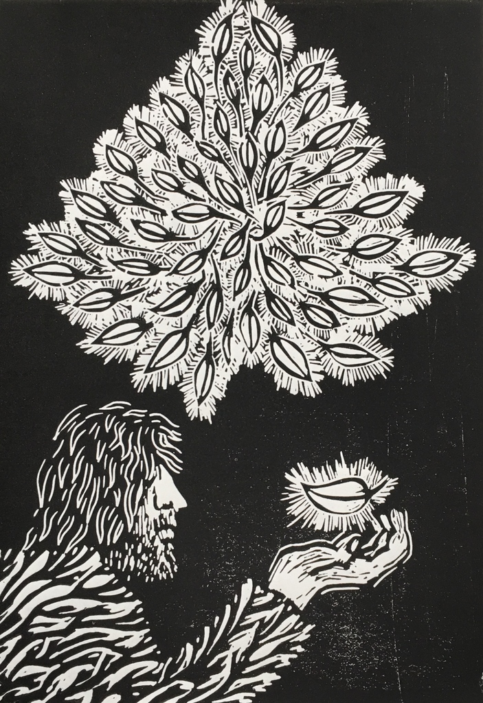 Herfst Linosnede op papier. Kijk voor info op https://www.artfinder.com/product/zwijgen-muteness/#/
