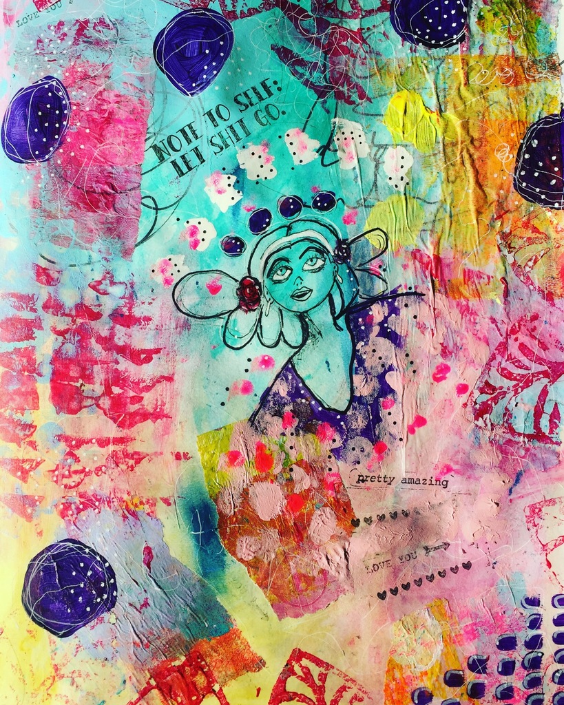Vrouw Portret Abstract Gelaagd Layered Kleurrijk Mixedmedia
