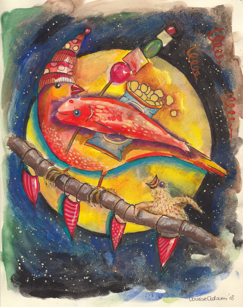 Vogel Vogelkunst Fantasie Kleur Aquarelverf Kleurpotlood Kunst Art Louise Adams Hilversum