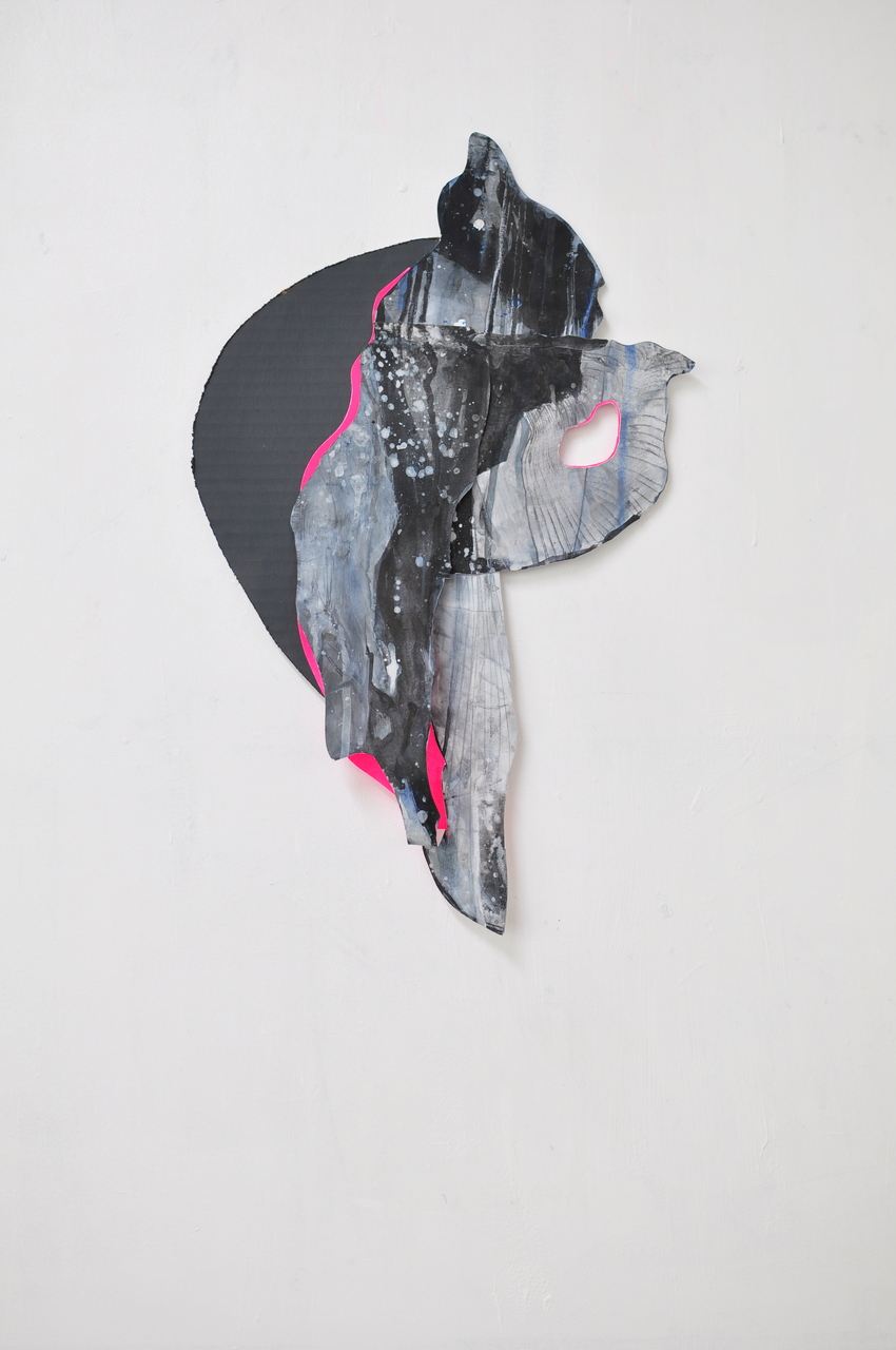 Natuurlijke vormen en patronen zijn het uitgangspunt voor ruimtelijke tekeningen en collages die zich los en speels over de muur verspreiden. Donkere stevige vormen, rond, ovaal, of als schaduwen, vaak gesneden uit karton, vormen een basis. Daarop en daaruit groeit bewerkt papier in allerlei vormen en structuren, heel organisch. Het papier is afwisselend fijn betekend of ruig bewerkt met krijt, inkt, verf, en met mes of schaar. In natuurlijke tinten, maar ook in zwart-wit, met soms juist een fel fluorescerend accent. Fijn als kant of filigraan, ruw als boomschors of een rotsblok. Het werk doet denken aan het lijnenspel van boomtakken, lianen, jonge loten van planten, levende organismen, cellen, of biologische en geologische structuren. Zoals in de natuur alles ontstaat, groeit en voortdur