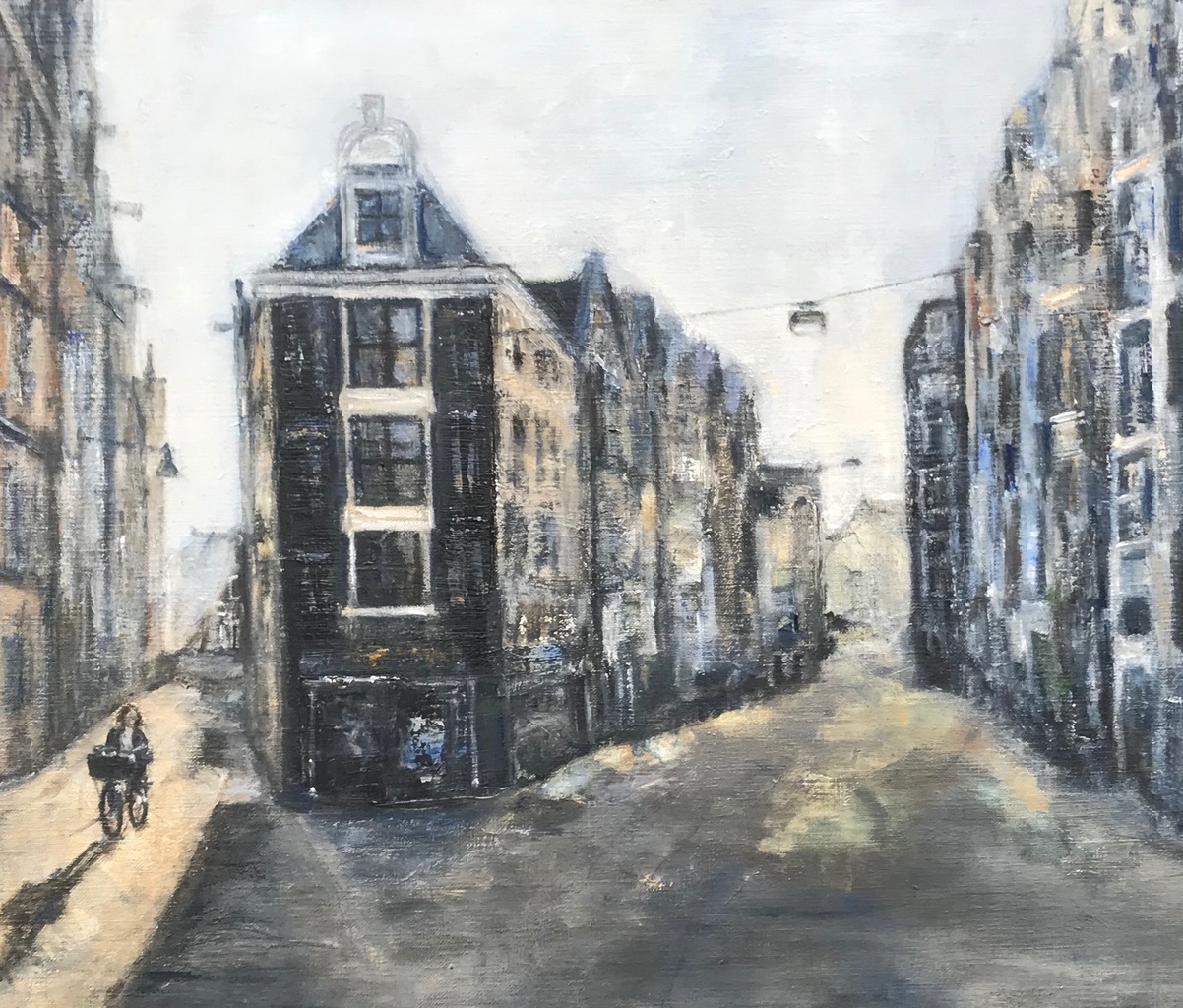 Amsterdam Ketelstraat, olieverf op linnen. Met door A. Hofman handgemaakte lijste van oud zink