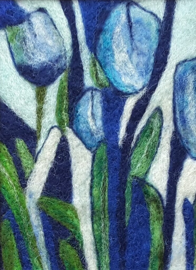 In april 2016 heb ik het droogvilten, naaldvilten, ontdekt tijdens een workshop “Schilderen met wol”. Schilderen met wol; dat had voor mij een magische klank. Het werken met zo veel kleuren wol, het laten verlopen van de ene kleur in de andere: de passie om met dit materiaal te werken is ontstaan. Met heel veel plezier besteed ik een groot deel van mijn vrije tijd aan deze bezigheid.