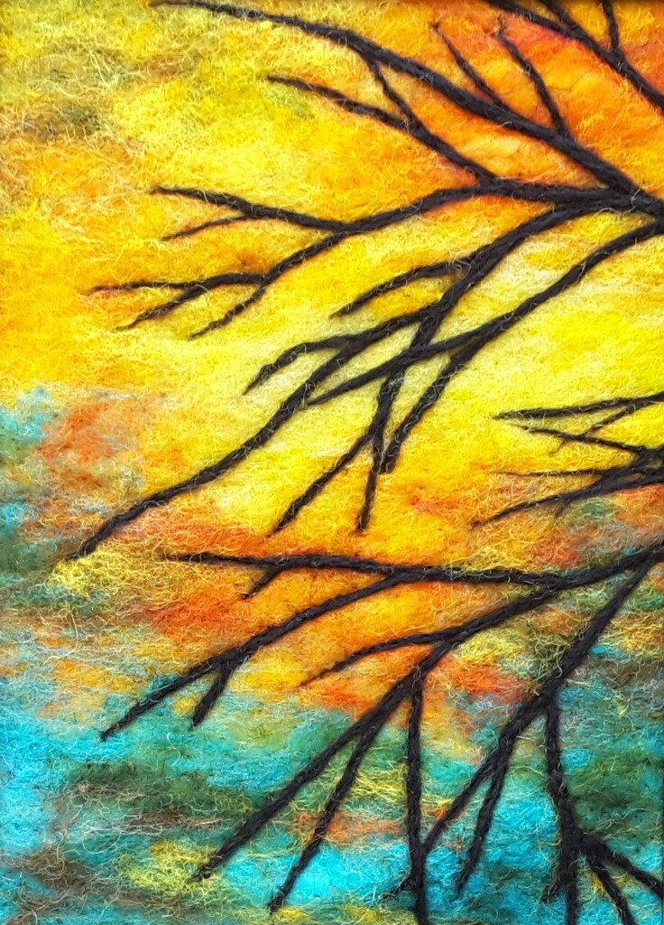 In april 2016 heb ik het droogvilten, naaldvilten, ontdekt tijdens een workshop “Schilderen met wol”. Schilderen met wol; dat had voor mij een magische klank. Het werken met zo veel kleuren wol, het laten verlopen van de ene kleur in de andere: de passie om met dit materiaal te werken is ontstaan. Met heel veel plezier besteed ik een groot deel van mijn vrije tijd aan deze bezigheid.