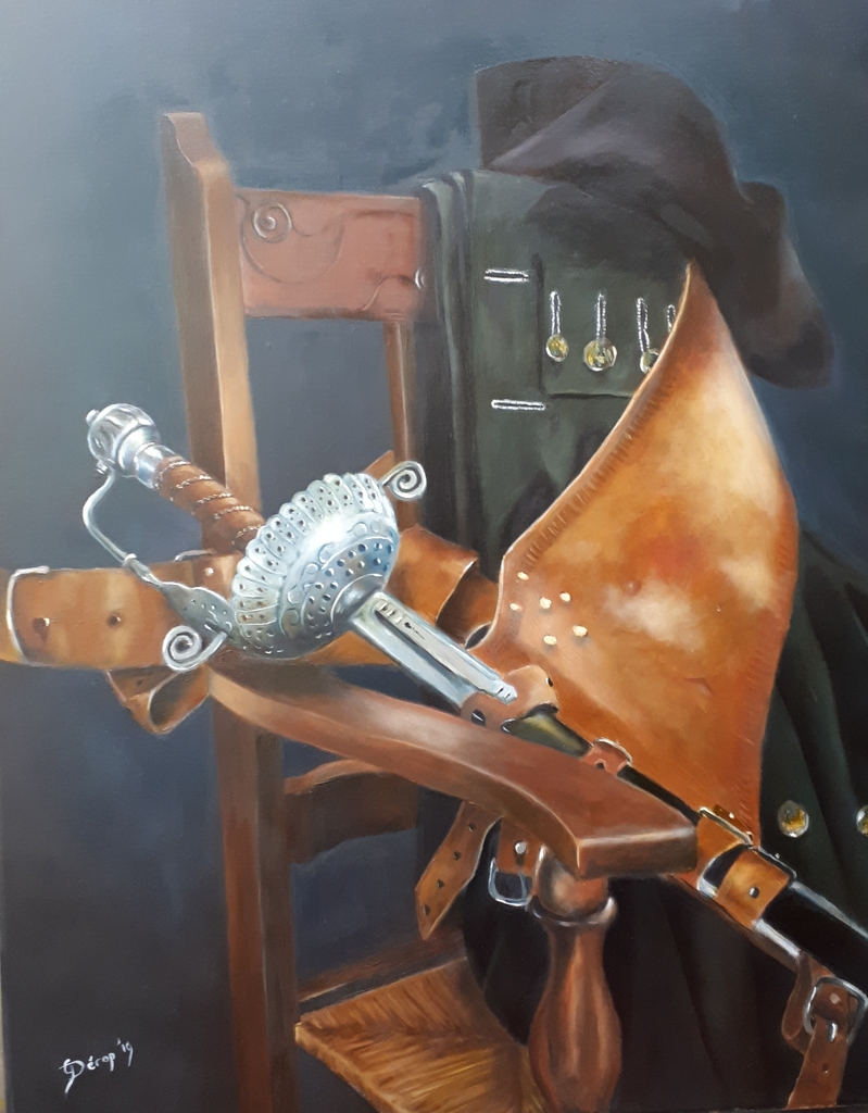 Georges Dérop, kunstschilder met als thema Sport en bewegen. Gefascineerd door het schermen van vroeger tot nu. De spanning die uitgaat van om dat ene moment op doek te zetten inspireert mij. Maar ook de natuur in al zijn pracht en glorie zet ik graag op het doek. Speciaal onderwerp is de geschiedenis van het zwaard. van actie tot en met stilleven, van Romeinen tot heden. En verder maak ik portretten van mijn familie en teken ik dieren en vogels uit de wildernis alsmede huis dieren
