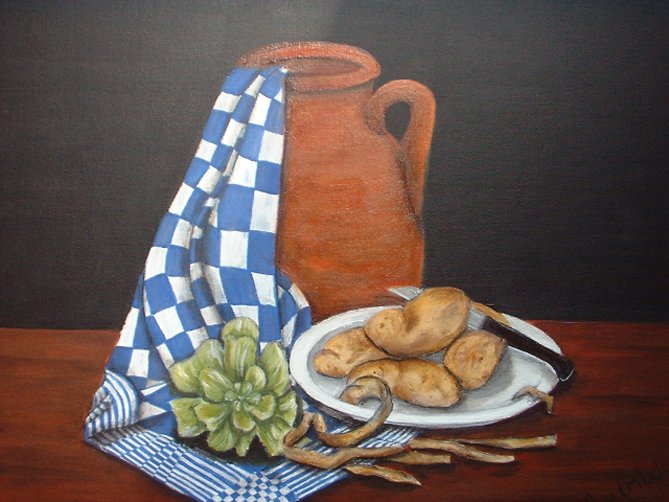 Ik ben Ingrid Jansen van Embden. Ik ben getrouwd maar schilder onder mijn meisjesnaam. Ik werk in een ziekenhuis als centraliste.Ik schilder graag misschien wel te graag, een week niet schilderen is een ramp. In het begin schilderde ik nog weleens wat na nog wel trouwens maar nu probeer ik er altijd iets van mijzelf in te leggen. Ik schilder het liefst stillevens en portretten. Ik ben autodidact en eigenlijk nooit tevreden over mijn eigen werk. Ik hoor dan ook graag de mening van anderen.