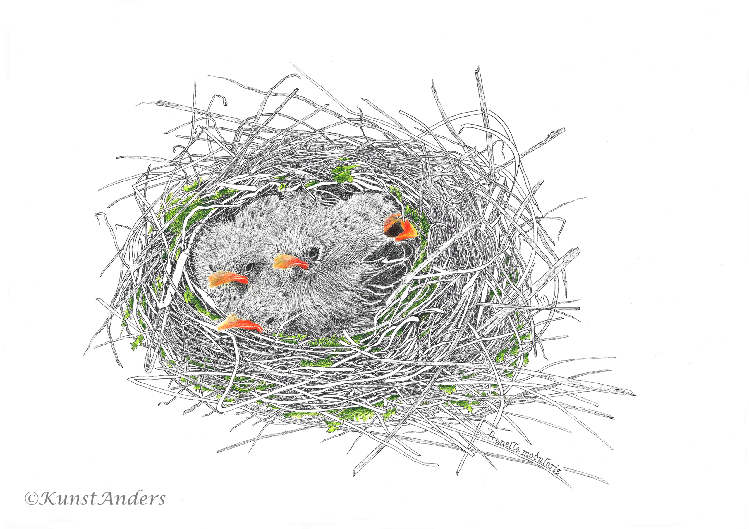 Wildlife Dieren Natuur Vogels Pentekening Nesten Heggenmus Kunstanders