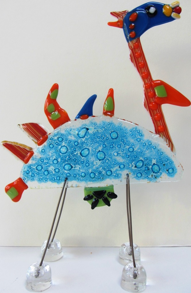 Een zeer parmantig, hoog op glazen-hoefjes-dier. Je kunt er je fantasie op loslaten, want niks is zeker; het dier kan het alles zijn. Kleurrijk en vrolijk.