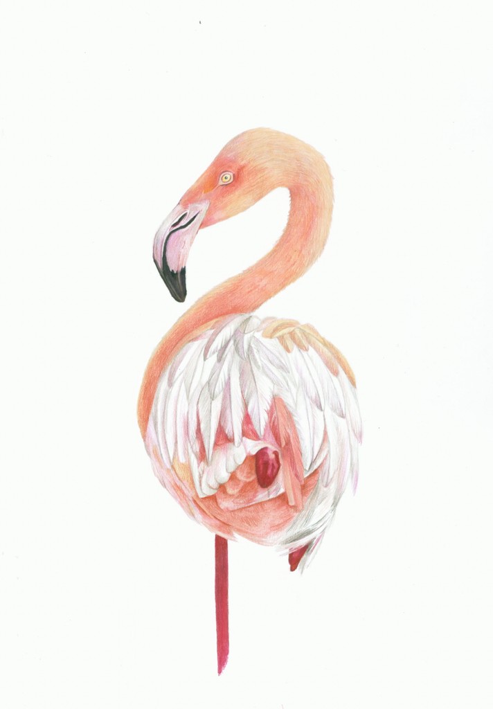 Flamingo met kleurpotlood en markers op Fabriano White papier