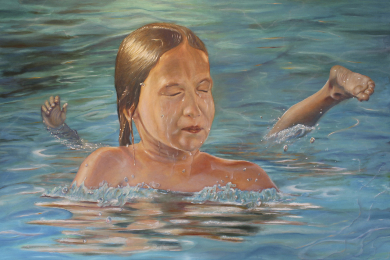 Zee Blauw Water Olie Realistisch Meisjes Surreëel Realisme Kinderen Klassiek Zwembad Fotorealisme Hyperrealisme
