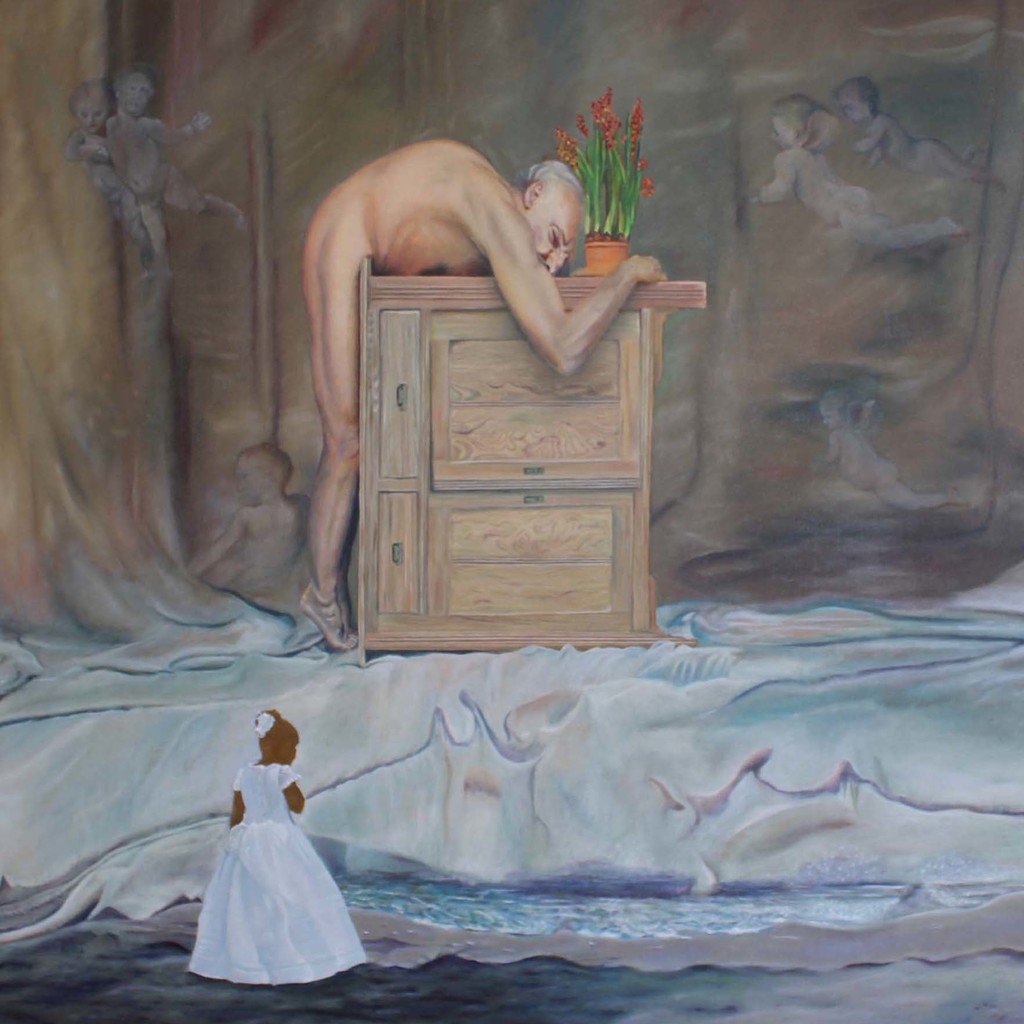 Meisje Man Naakt Olie Magisch Surrealisme Surreëel Realisme Vervorming Absurdisme