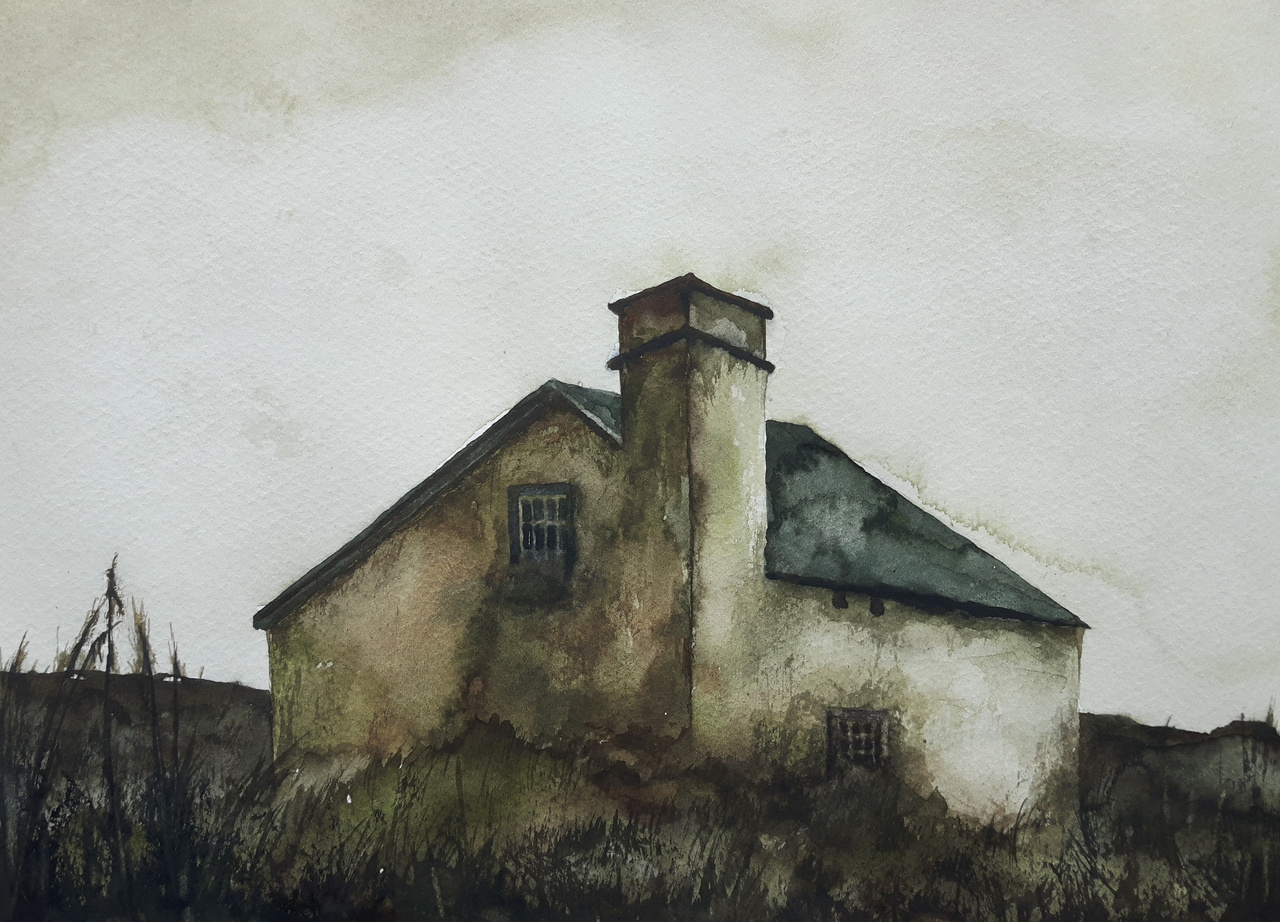 Sinds enige tijd ben ik gefascineerd door het werk van de Amerkaanse kunstenaar Andrew Wyeth (1917-2009). Hij is een van de bekendste en meest geliefde kunstenaars van de Verenigde Staten en schilderde vooral het platteland van Pennsylvania en Maine. Het werk van Wyeth herken je aan zijn beperkte palet bestaande uit aardetinten. Als materiaal gebruikte hij vaak waterverf en ei tempera. Al werkte hij precies en gedetailleerd, toch ging hij voorbij het pure realisme door aan elk werk een bepaalde emotie toe te voegen. Zijn werk valt daardoor te plaatsen in het magisch realisme. Ik probeer hem in mijn aquarellen hem volledig te imiteren, maar me vooral op door door hem gecreëerde sfeer te concentreren. En daar dan een eigen invulling te geven. Het aquarel is gemaakt op 300 grams papier (Fabriano). De vermelde verkooprijs is zonder lijst / glas.