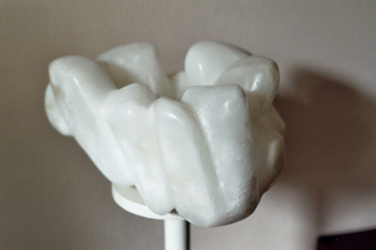 als je ernaar toe loopt en eromheen, dan werkt de volle expressiekracht; op de foto lijken de vormen van de albast misschien verstard en amorf..