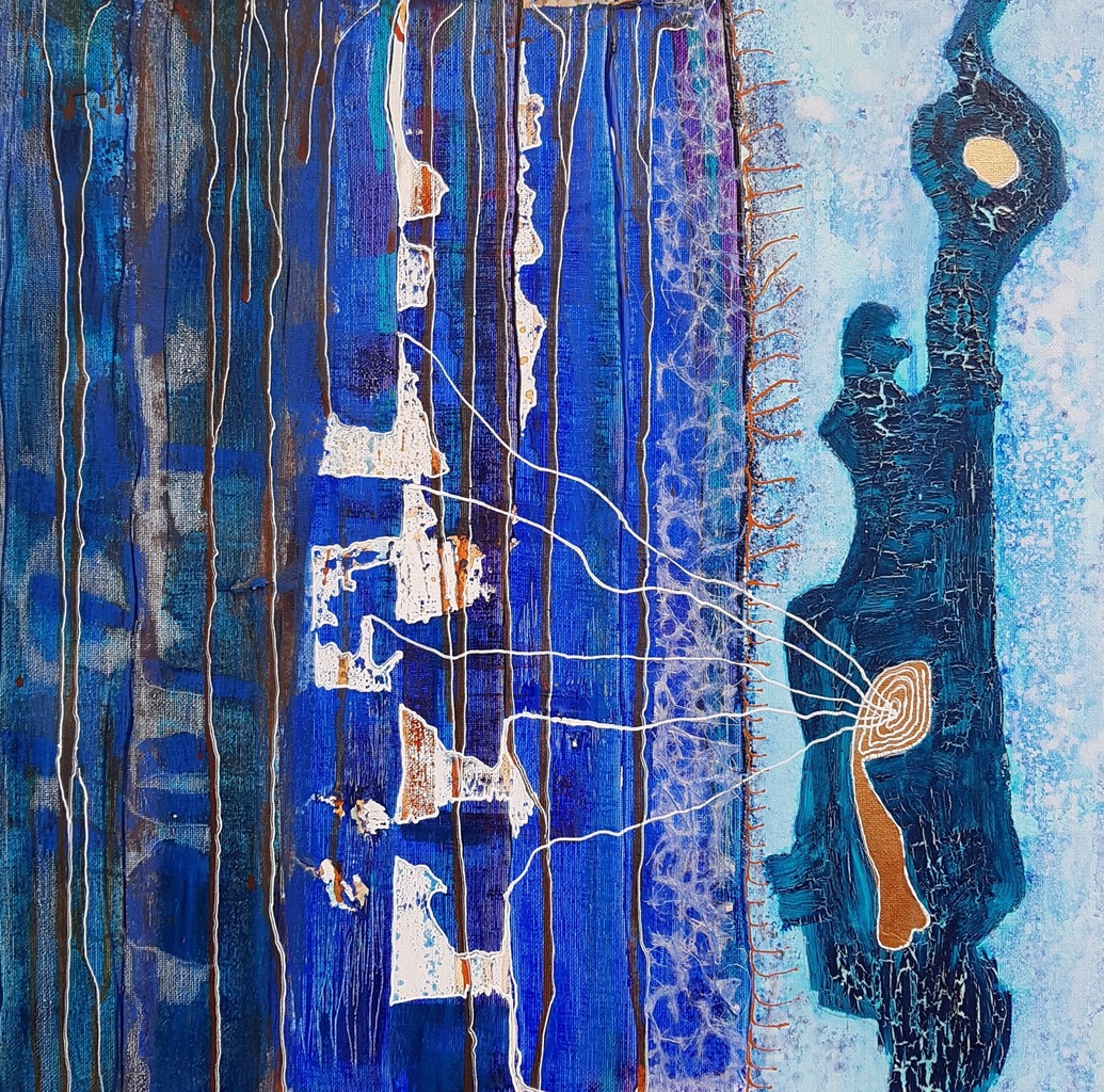 Blauw Mixed Media Verhalend