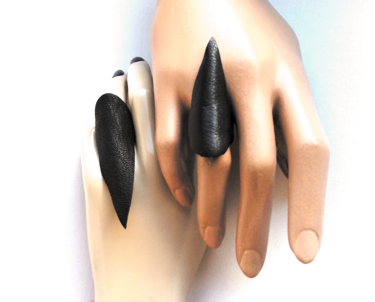 Draagbare kunst , statement sieraden handgemaakt van hergebruikt leer Wearable art - recycled leather