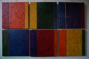 Ik schilder vooral abstracte kleurvelden, steeds op zoek naar de kracht van kleuren als verschijningsvorm van puur licht. Naar de kleuren zoals ze te zien zijn in de breking van de zonnestralen in waterdruppels, de regenboog; het zonlicht omgezet in kleur. Dit letterlijk alledaagse verschijnsel is voor mij pure magie, die ik voelbaar wil maken in mijn schilderijen. Mijn hele leven heb ik getekend en geschilderd. Maar pas in deze eeuw werd het voor mij serieus. Ik heb ooit een paar schildercursussen geprobeerd, daar echt ook wel wat opgestoken maar eigenlijk kan ik alleen in mijn eigen stilte, soms met muziek, werken Je kunt me dus een autodidact noemen.