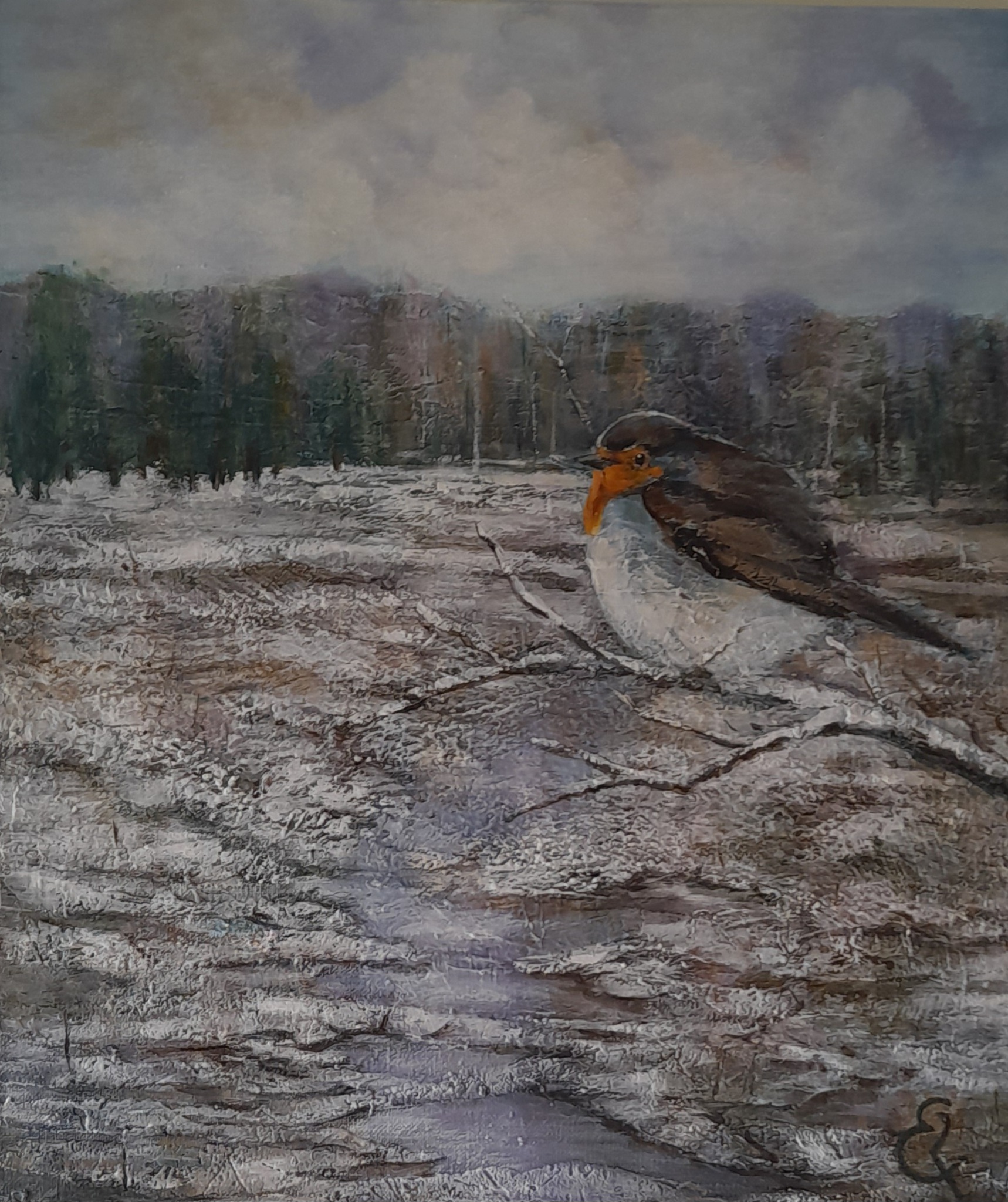 roodborst in de winter
