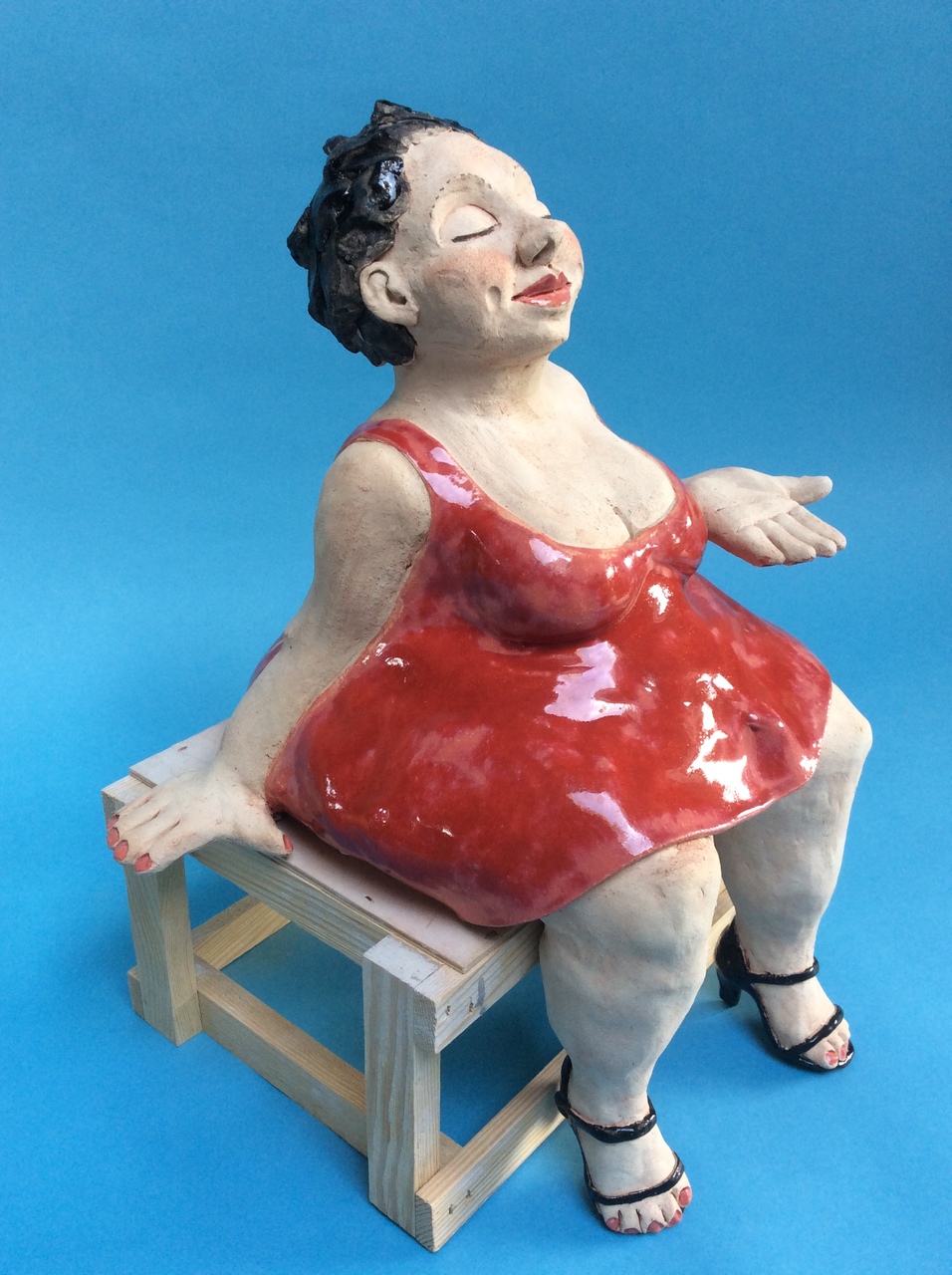 Keramiek Vrouw Rode Jurk Glanzend Mat
