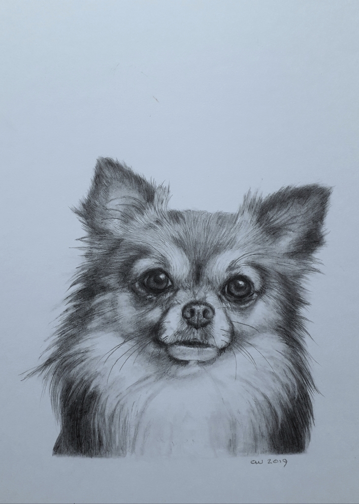 Klein portretje van Pepper. Grafietpotlood.