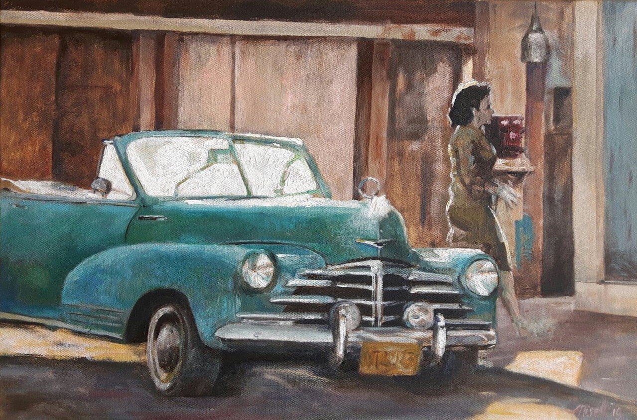 Cuba Oldtimer Oilpainting Nisettdewit Women City Morning Movie