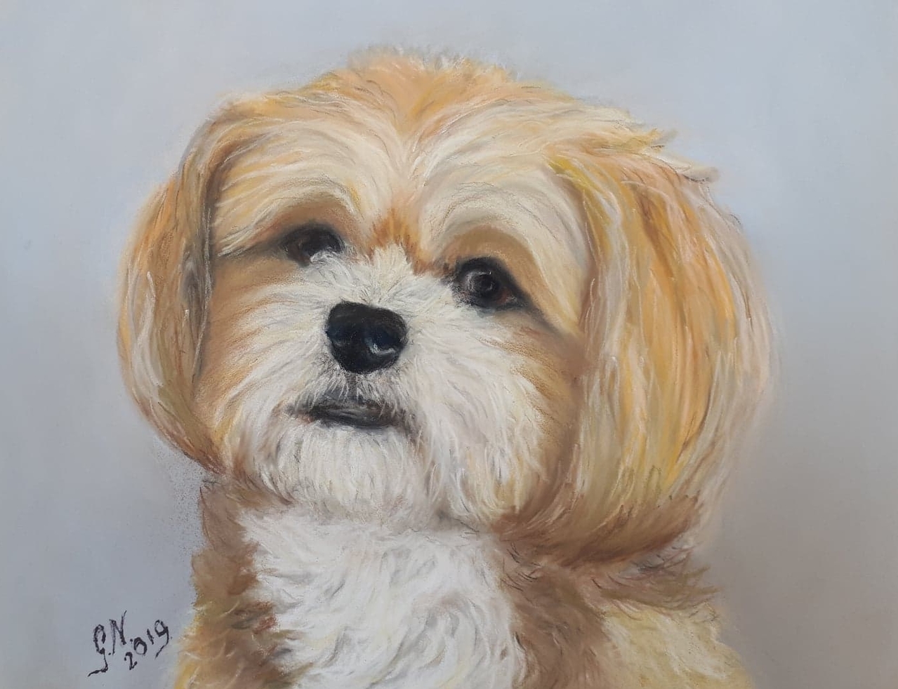 Hondenportret Pastel Hondje Maya Wit Bruin Huisdier