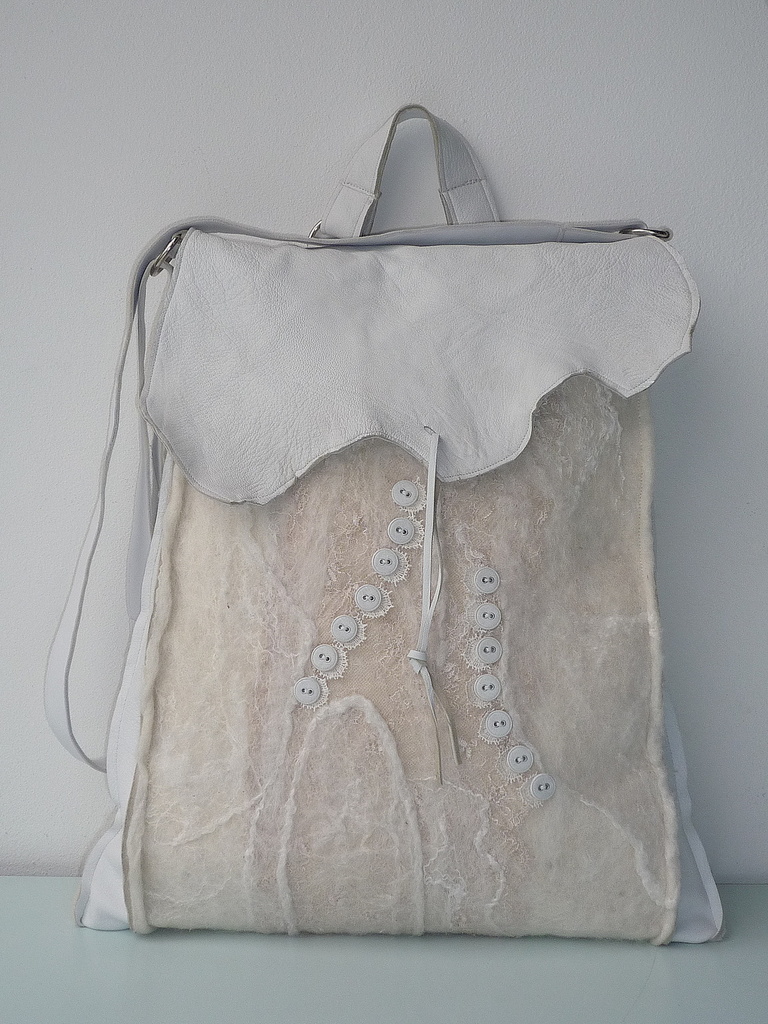 Handtas Tevens Rugzak Wit Lamsleer Vilt