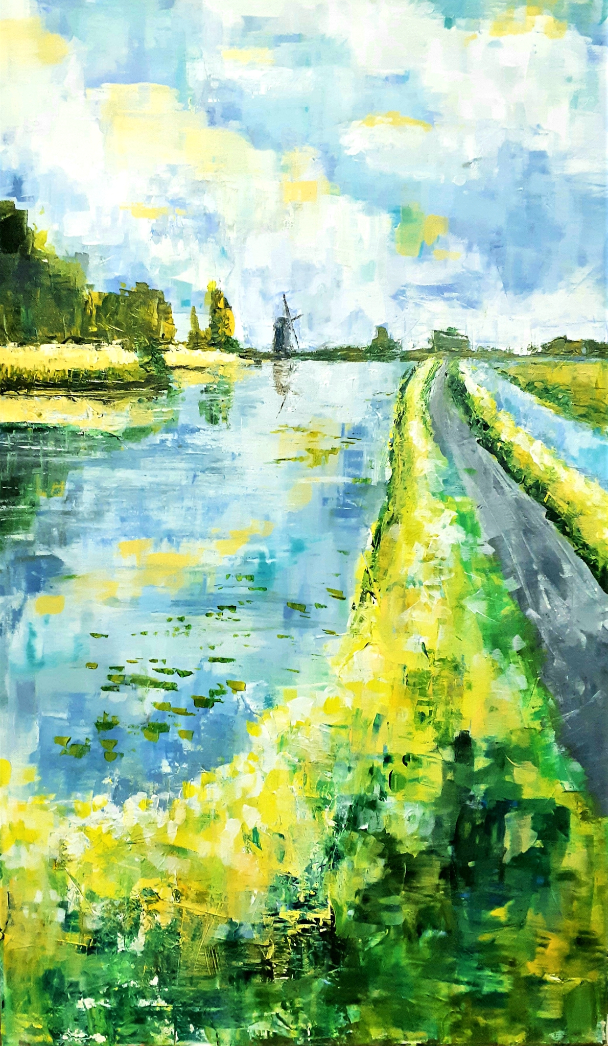 Voorjaar in natuurgebied: Het Rietveld. Het koolzaad en fluitekruid bloeien uitbundig