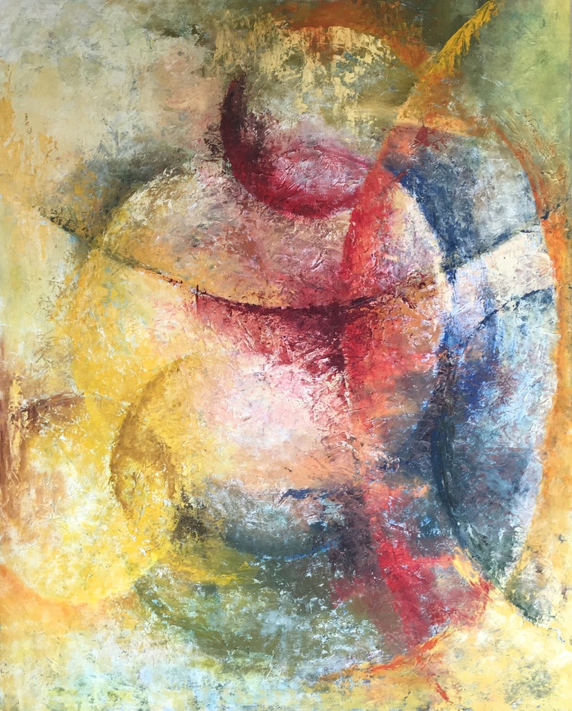 Heerlijk om een gevoel met een eigen draai aan de werkelijkheid op een abstraherende wijze op het doek te zetten.