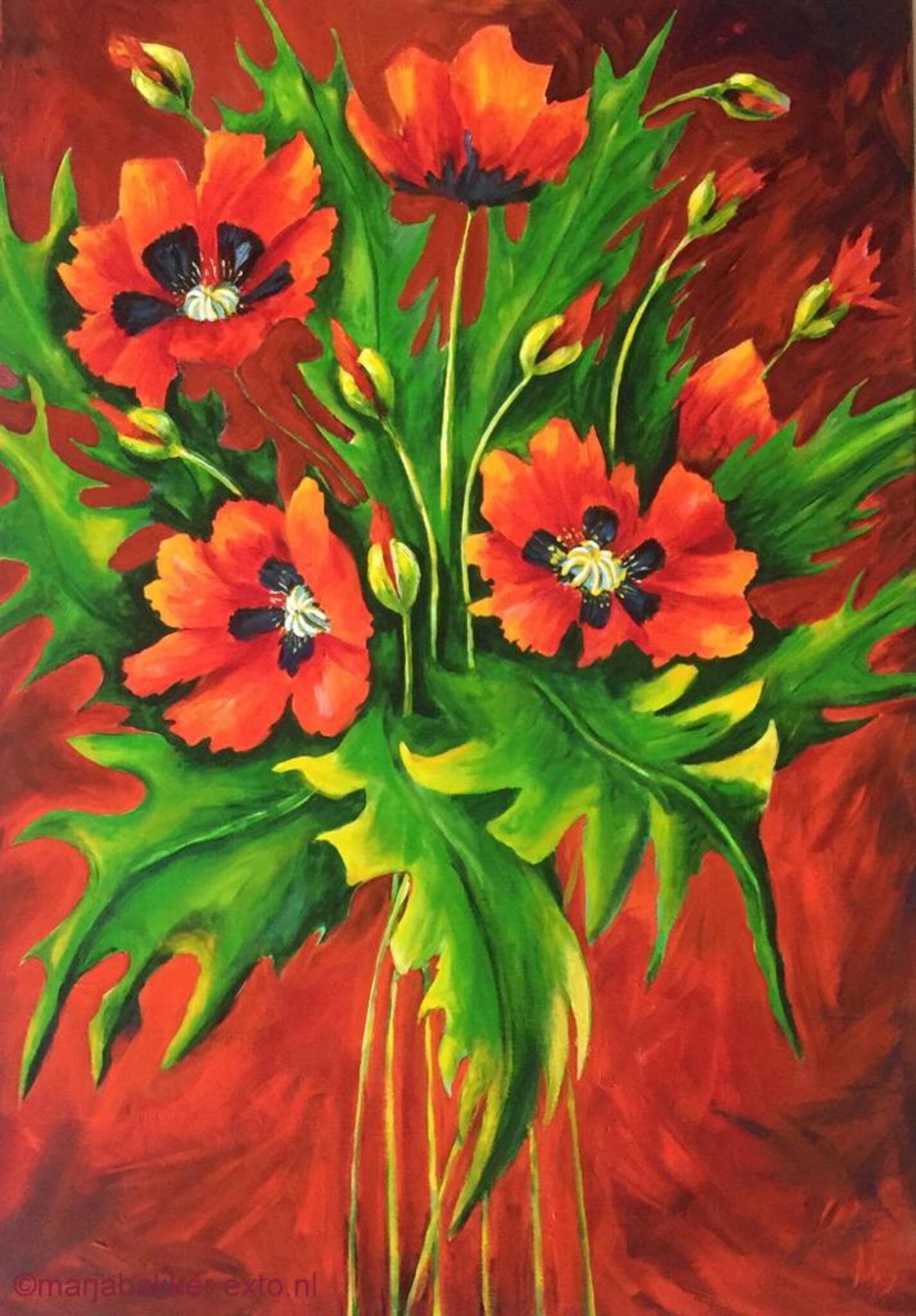 mijn werk is een afspiegeling van mijn belevingswereld. Het schilderij maakt zichzelf. Geniet tijdens de wandeling door mijn site, neem contact met mij op als U informatie wilt of prijzen wilt weten.