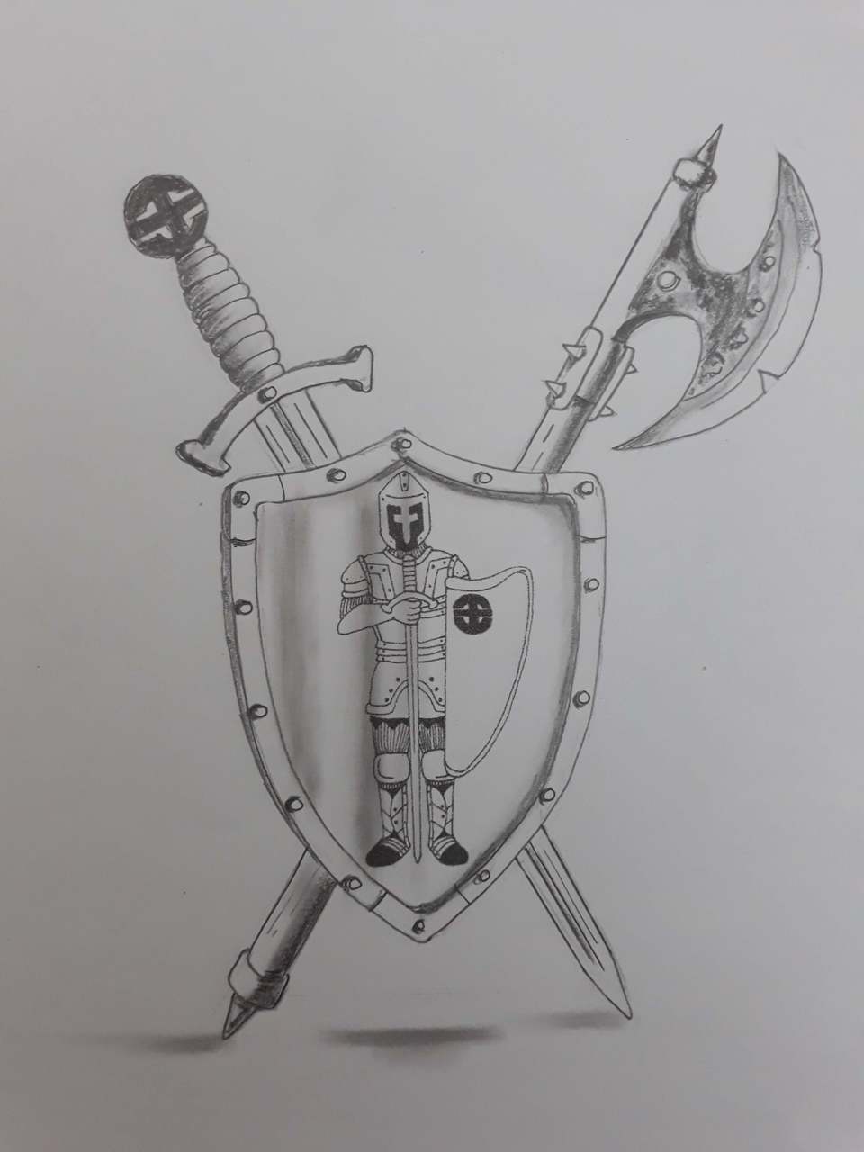 Wapenschild met zwaard en bijl