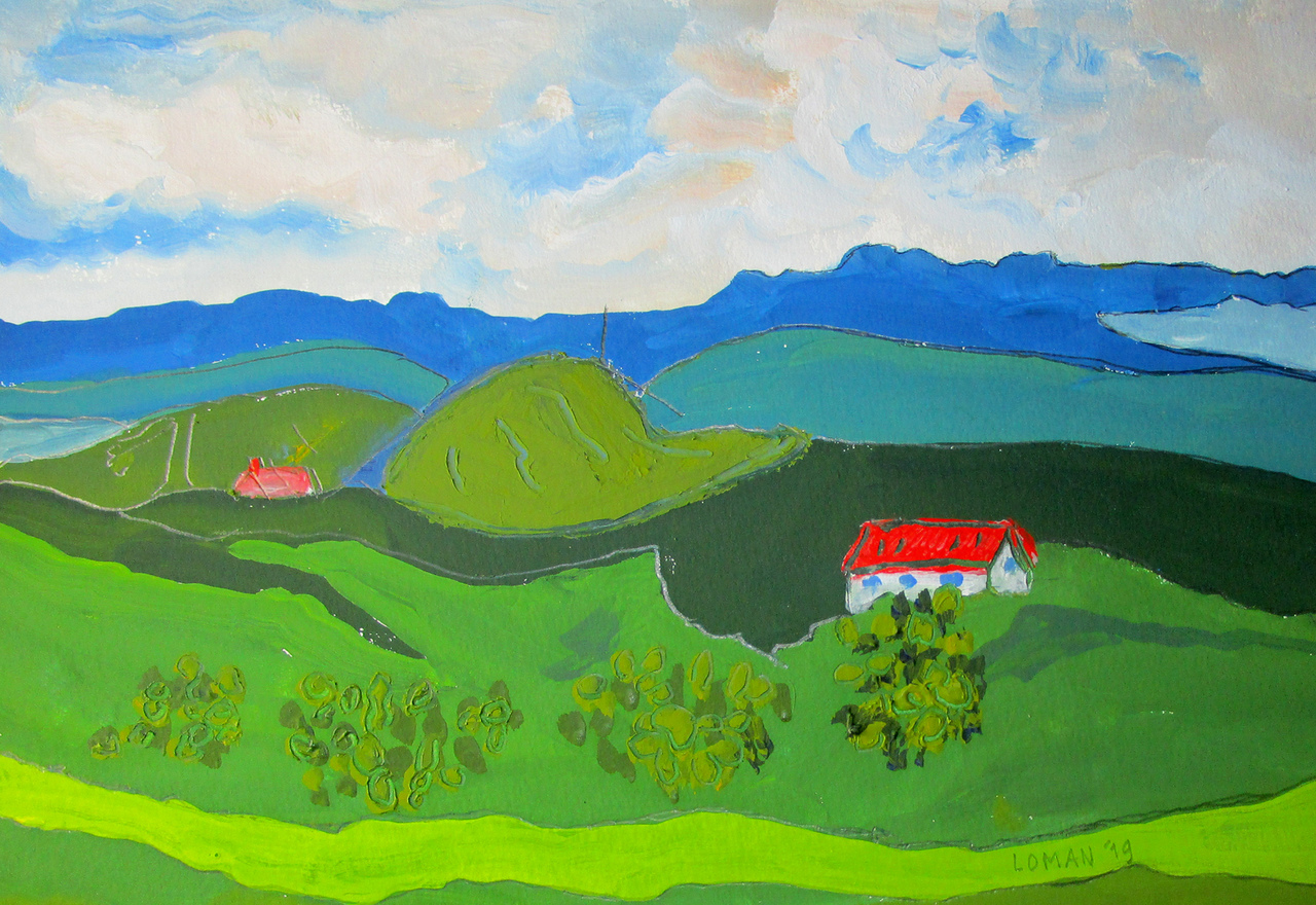 Karel Loman schildert expressief. Zijn landschappen en stads- en dorpsgezichten zet hij in heldere kleuren op papier. De sfeer van het landschap staat bij hem voorop. Loman werkt voornamelijk met temperaverf, aangevuld met inkt of potlood.