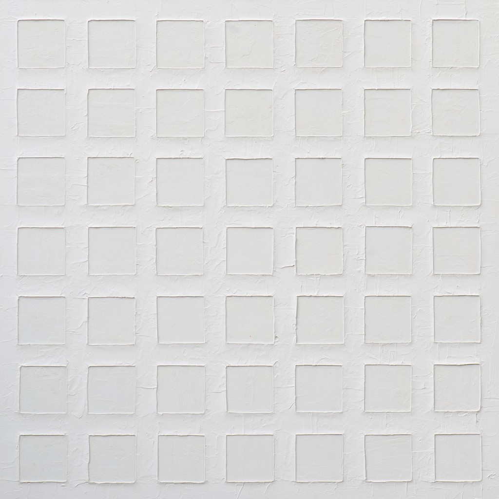 Verdiepte glanzend wittte vlakken en een mat witte omringende pasteuze opbouw