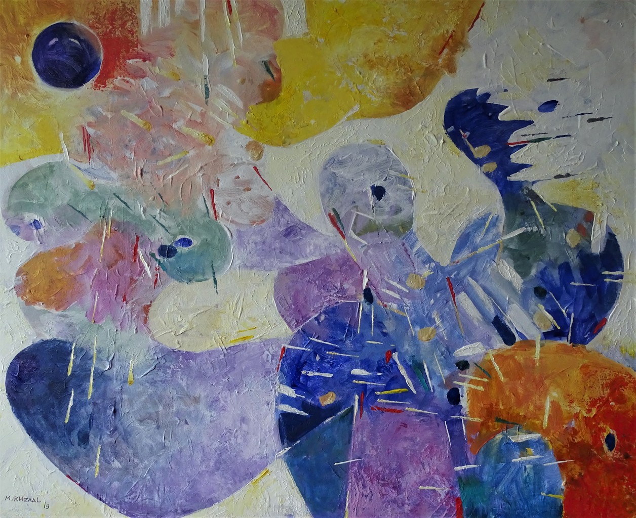 Mouafk Khzaal {1966} komt uit Syrië. Hij is zowel kunstenaar als tandarts. Zijn eerste solo tentoonstellingen vonden plaats in 2010 in Homs en Damascus en in 2014 in Libanon. In 2017 en 2018 in Huis Kernhem in Ede. In 2018 in Casteelse Poort museum in Wageningen.